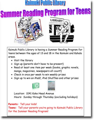 Event Calendar ItemKaimuki Public Library - Summer Reading Program For Teens