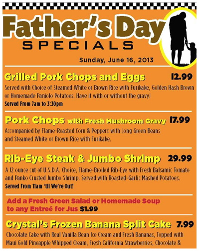 Event Calendar ItemFather's Day Specials At Big City Diner!