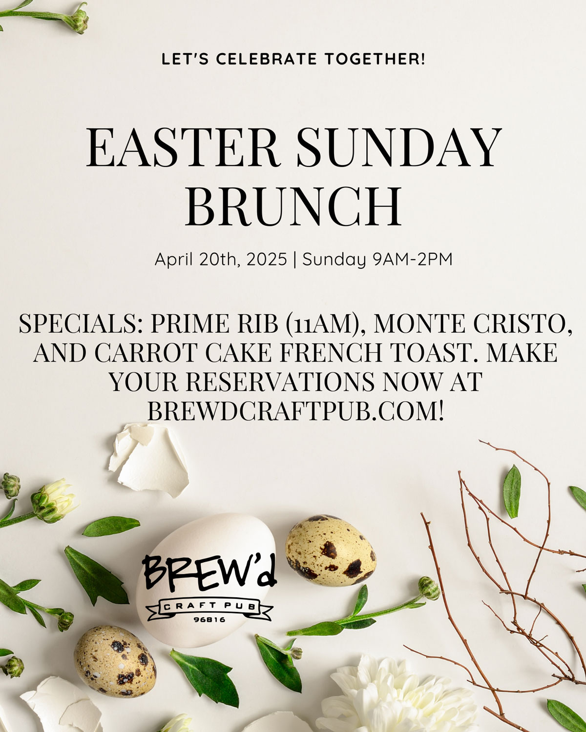 Event Calendar ItemBREW’d Craft Pub Special Event - Easter Brunch