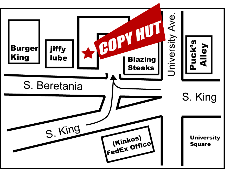 Copy Hut Hawaii is a premiere printing and graphic design busines located across the street from University FedEx Office (Kinko's), before Jiffy Lube & Burger King. Our pricing may save you 50% of your current printing costs.