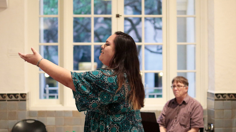 Visitors to the May 2017 First Friday at the Hawai`i State Art Museum enjoyed an evening of opera with singers from the Hawaii Opera Theatre's Orvis Opera Studio and staff. Performers included Erik Haines, HOT Director of Education, and Blythe Kelsey, HOT Education Coordinator. HOT receives funding from the SFCA's Biennium Grants program for their educational outreach. Their outreach is included in a recent Opera News article (Behind the Scenes: Hawaii Opera Theatre) - "We worked at a school where five of our leads were special-needs kids," Kelsey says. "Two of the main characters had major social issues in class. The kids learn how to talk in public, what to do on a stage, how to work well with groups. They gain a sense of self-worth that affects their day-to-day life."