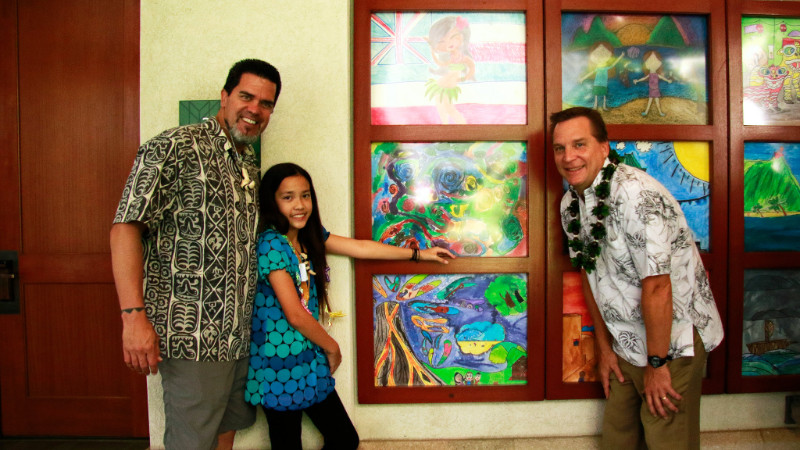 The Young Artists of Hawai‘i exhibition is open to all public and private school students, grades kindergarten through sixth. The theme My Culture, My Family, and Me is intended to inspire students to express how they feel, see, or interpret their lives in the islands. Once schools submit artworks, distinguished judges select 96 works for exhibition.