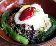 A kicked-up, signature version of the traditional rice bowl dish. Sautéed Oahu bean sprouts, seared portobello mushrooms, seasonal greens and veggies, hijiki seaweed, marinated Wahiawa tofu, a pan-fried Peterson's Upland Farm egg and spicy gochujang sauce. Served over Rich Rice. Gluten free upon request.