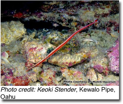 About: This beautiful and brightly colored pipefish is endemic to the Hawaiian region. It is typically found in caves or against rocks down to a depth of around 50 meters (160 ft). Males of this species can carry up to 200 fertilized eggs until they hatch.