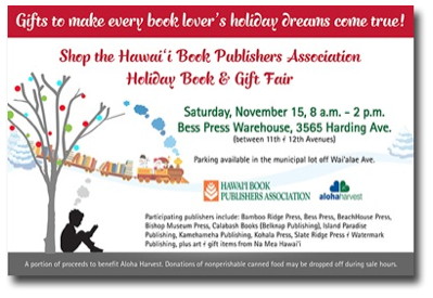 An ideal opportunity to jumpstart your holiday shopping and contribute to one of Oahu's leading community service providers at the same time. Members of the Hawai‘i Book Publishers Association (HBPA) have organized a joint pop-up holiday book and gift sale. This is a unique event to showcase a wide range of the latest book releases and bestsellers in Hawai‘i, as well as look through Na Mea Hawaiʻi's unique collection of Hawaiian art and gift items, all in one place. A portion of the proceeds from this event will benefit Aloha Harvest, a community organization rescuing quality food and delivering it to O‘ahu's hungry. Donations of nonperishable canned food may be dropped off during sale hours.