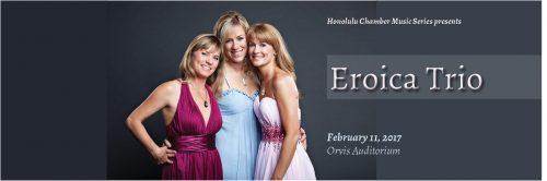 The Grammy award-nominated Eroica Trio returns! The Eroica Trio enraptures audiences with flawless technical virtuosity, irresistible enthusiasm, and sensual elegance. The three women who make up this celebrated ensemble electrify the concert stage with their passionate performances. The New York Times writes, "There is an edge of the seat intensity to every note they produce." . The Trio won the prestigious Naumburg Award, resulting in a highly successful Lincoln Center debut and has since toured the United States, Europe, Middle…