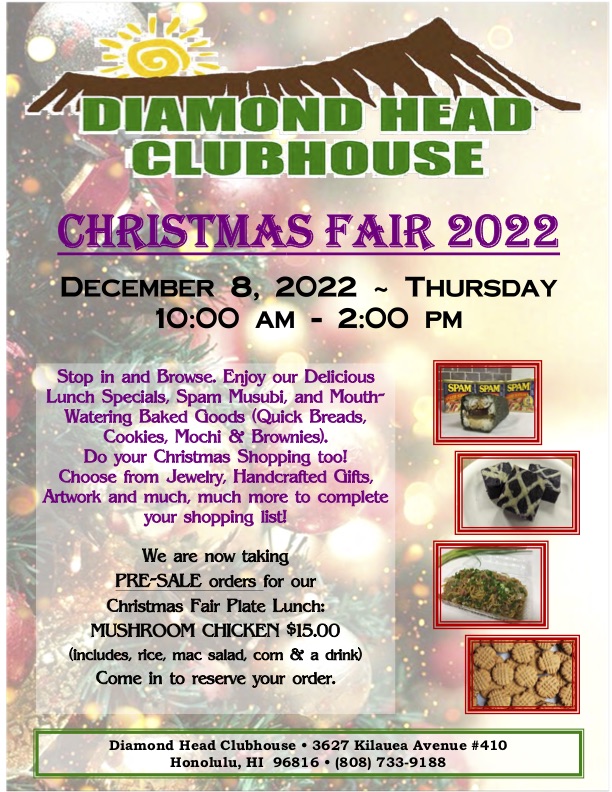 Event Calendar ItemDiamond Head Clubhouse - Christmas Fair 2022