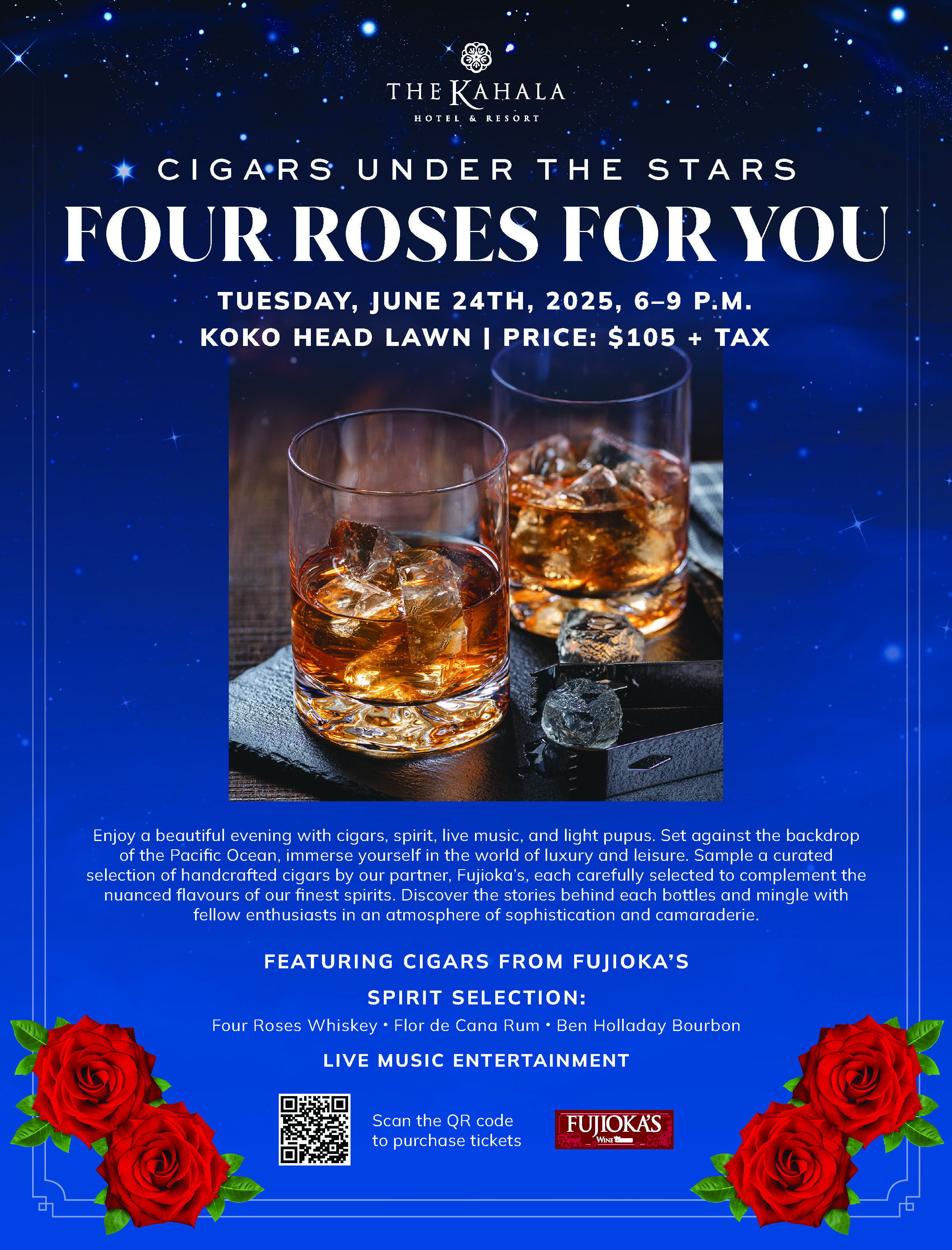 Cigars Under the Stars: FOUR ROSES FOR YOU at The Kahala Hotel & Resort on Tuesday, 6/24/25