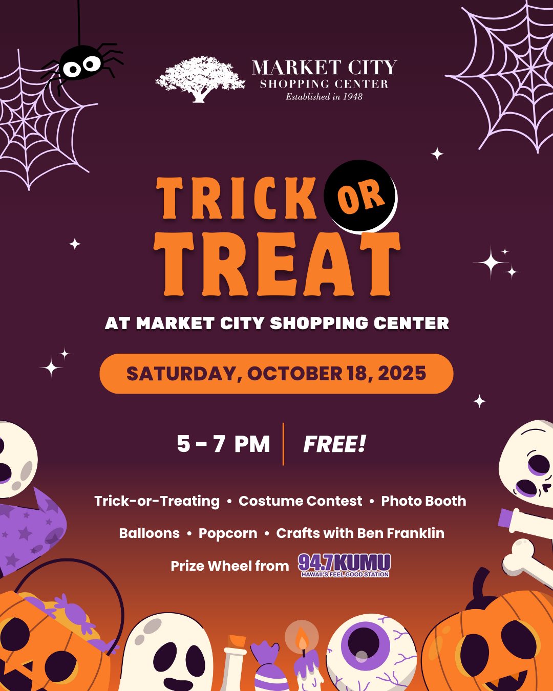 Trick-or-treating around Market City Shopping Center is just part of the family-friendly fun during our annual Halloween celebration on Saturday, October 18, 2025, from 5 to 7 p.m.