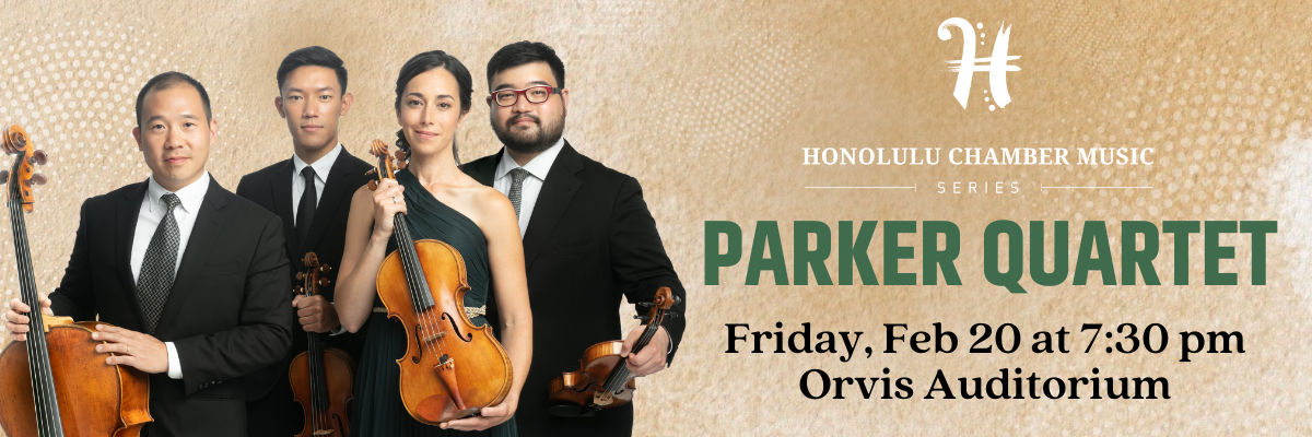FEBRUARY 20, 7:30 PM Honolulu Chamber Music Series Parker Quartet Orvis Auditorium at UH Mānoa 2411 Dole Street, Honolulu, HI, United States 2/20/2026 Honolulu Chamber Music Series, Parker String Quartet A fan favorite of HCMS (performances in 2012 and 2018), the Parker Quartet is internationally recognized for their “fearless, yet probingly beautiful” (The Strad) performances. The Grammy Award-winning Parker Quartet has distinguished itself as one of the preeminent ensembles of its generation and renowned for their fresh, unique approach to the great ... $15 – $55 FRI 27