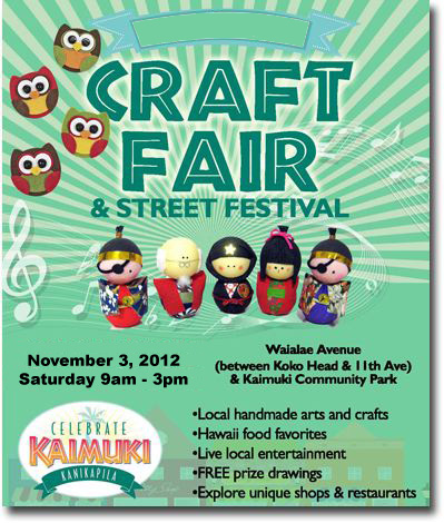 Celebrate Kaimuki! is the ultimate community event that will attract scores of people to Kaimuki. It features a craft faire perfectly timed for the Holiday shopping season. In addition, families will enjoy a day of delicious eats from area restaurants, local entertainment, and lots of fun. There'll be Crafts booths galore, food booths, lots of entertainment! Come and join us in Kaimuki!