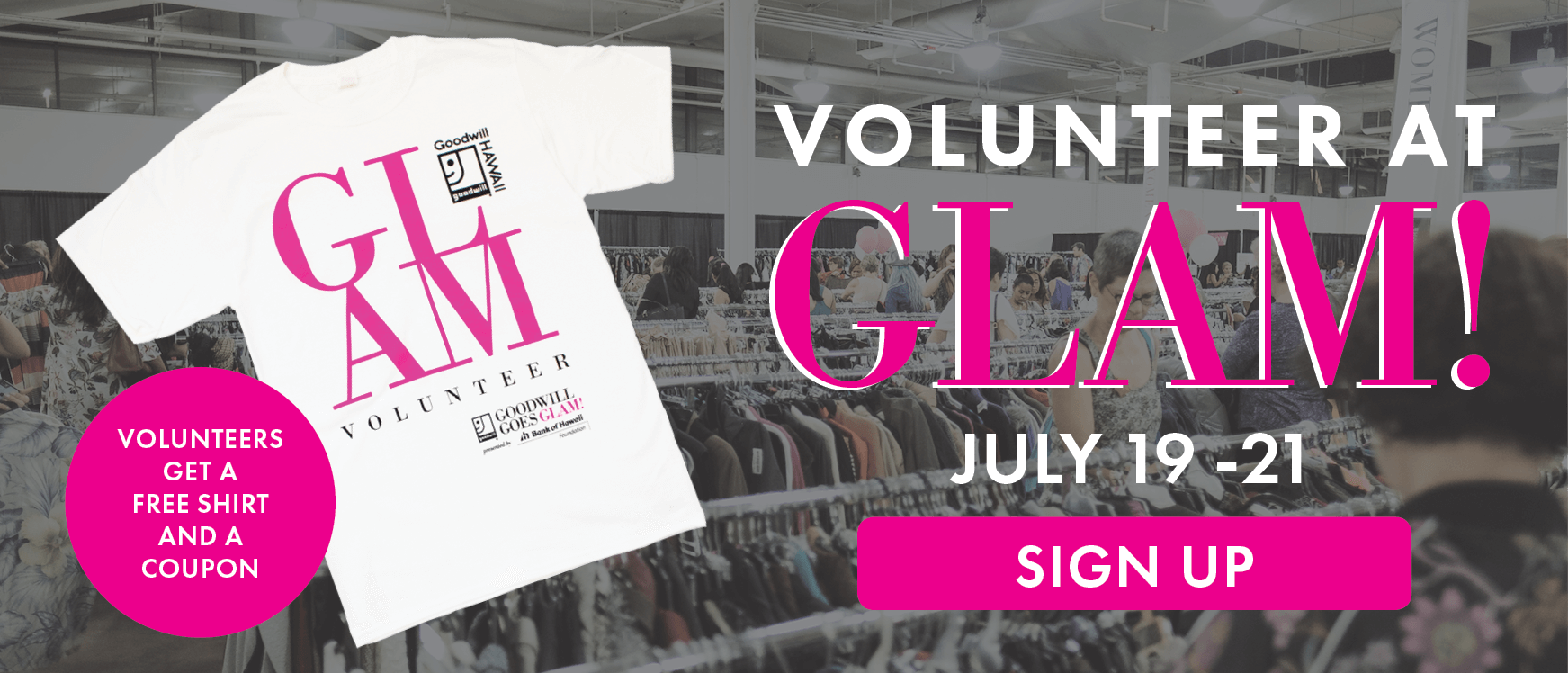After, be the first to shop the GLAM! Sale featuring Goodwill Hawaii’s best-of-the-best thrifts, including looks from the runway.