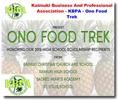EVENT - Kaimuki Business & Professional Association (KBPA) - Presents Ono Food Trek (7/26/2019 - 4:30pm - 8pm)