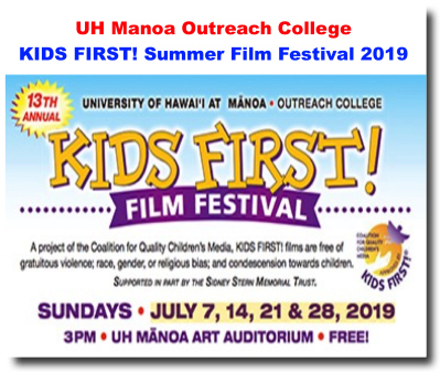 EVENT - UH Manoa Outreach College - KIDS FIRST! Summer Film Festival 2019 - FREE! (Sundays - JULY 7, 14, 21 & 28, 2019 - see notes for times)