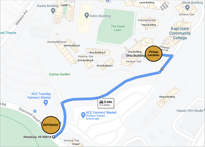 Pick-up from Kapi‘olani Community College - see map below All individuals may stay in their vehicles during pick-up as the Culinary Department will load each package into the vehicle. Please do not come to campus if exhibiting any Covid-19 or illness related symptoms. $325 serves 4 people ($70 is tax deductible) Please note: This meal is cold and will need to be reheated (instructions included)