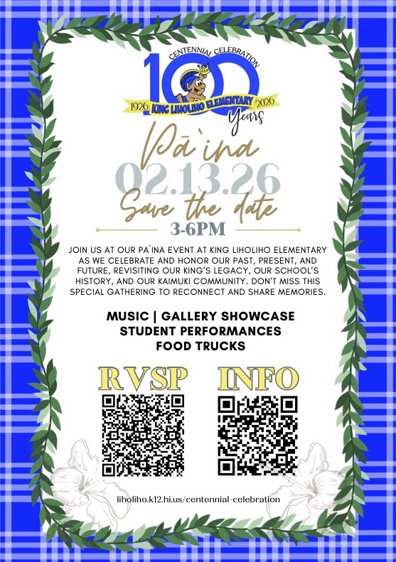King Liholiho Elementary Centennial CelebrationWe are proud to be celebrating Liholiho Elementary's School 100th year anniversary in 2026. We are looking for memories of your school time.