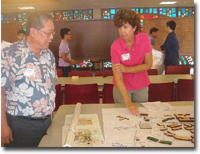 Kelley Roberson of the Waialae Kahala Neighborhood Board, KCC Chancellor Leon Richards and Vince Lee of Leahi Hospital discuss where to put new buildings and additional parking.
