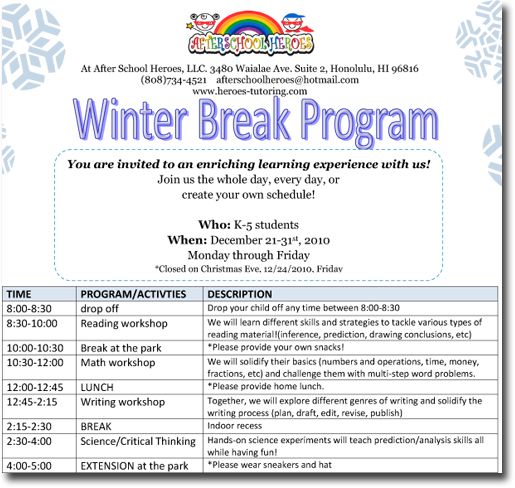 After School Heroes (A.S.H) Winter Break Program