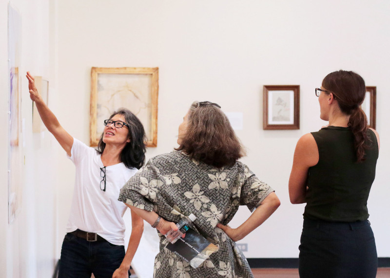 Visual Art Consultants Gaye Chan and Deborah Gottheil Nehmad with Art in Public Places Manager Karen Ewald at the Acquisition Award Selection Committee (AASC) visit to the An After School Special exhibit of University of Hawaiʻi-Mānoa MFA student work in 2017.