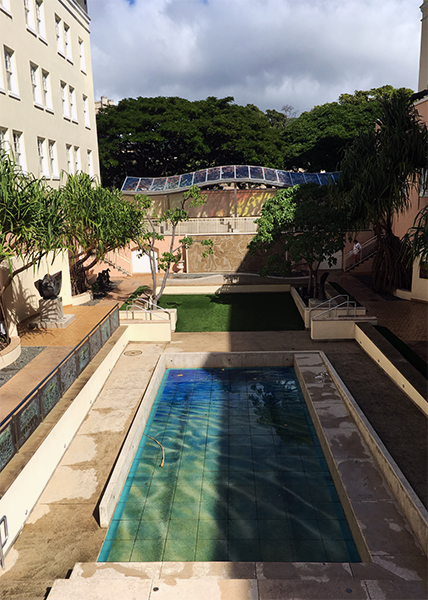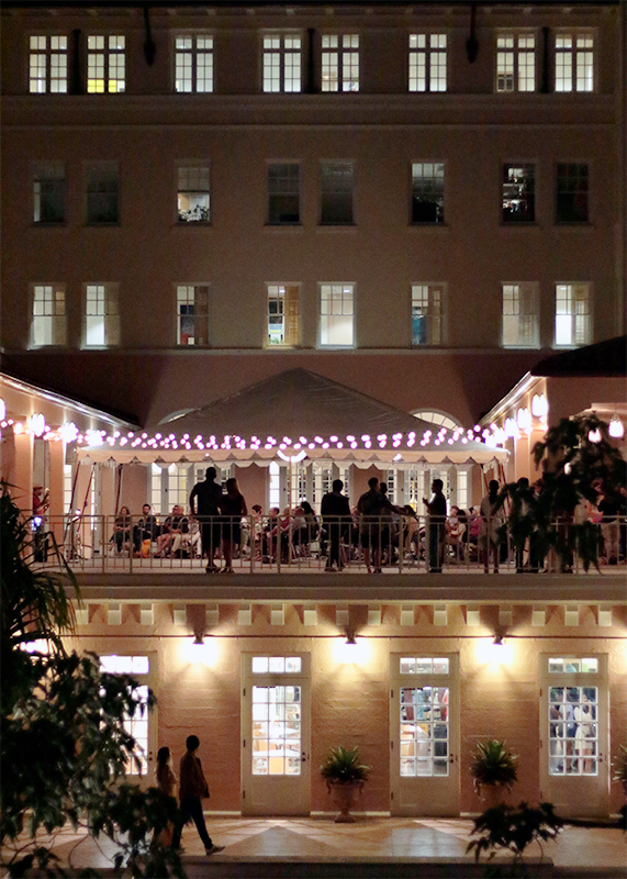 View of the second floor lanai from the Sculpture Garden. The garden is also open on First Fridays, 6:00 - 9:00 p.m.