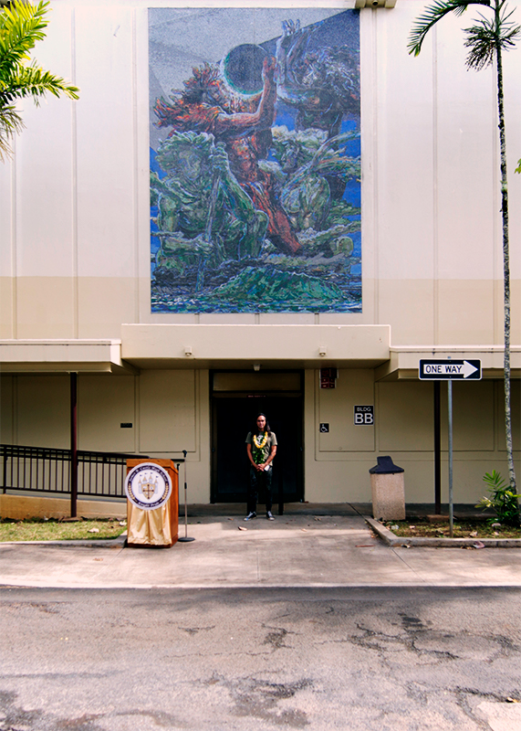 Artist Solomon Enos with Hina and Her Family Return at James B. Castle High School in Kāneʻohe, on the Windward Side of Oʻahu.