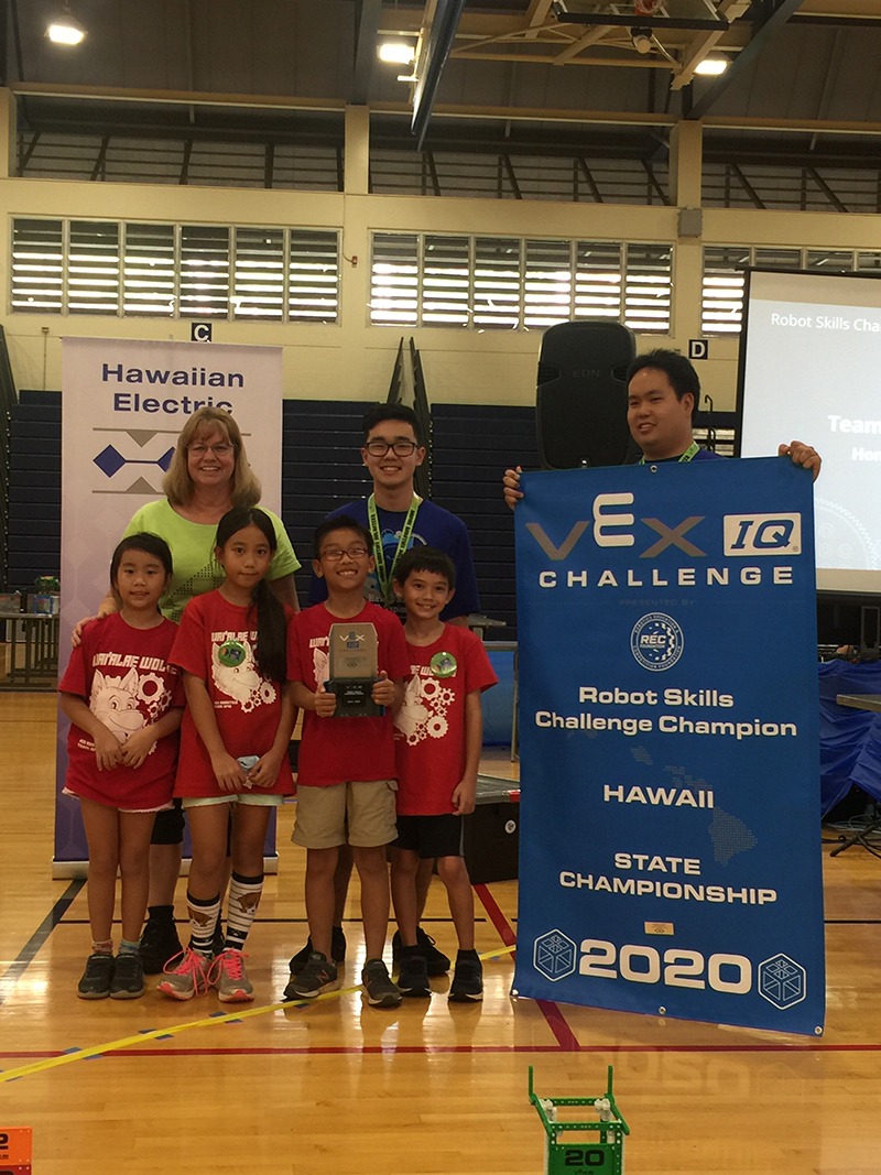 The first-place Robot Skills Champion Award went to Waiʻalae Elementary team 1045A, which previously qualified for the 2020 VEX Worlds through winning the Excellence Award at the Mark Leon VEX IQ Invitational at St. Louis School last July.
