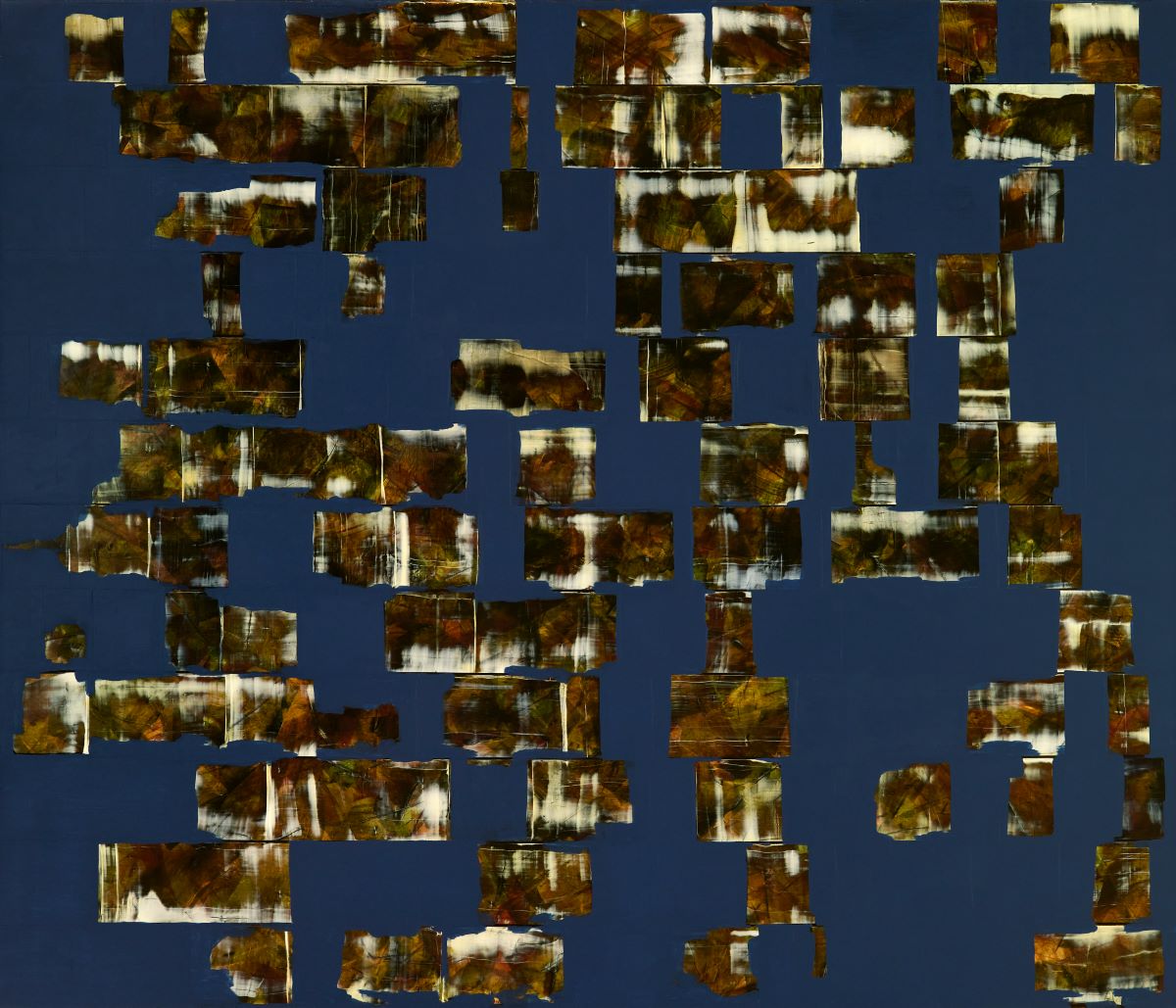 Photo: Mary M. Mitsuda, “Island Manuscript” acrylic on canvas painting, 2023. Currently on display at Honolulu Community College. Island Manuscript was inspired by old maps and manuscripts, and the various stories these artifacts suggest. Mitsuda states, "horizontal and vertical stripes are probably the most basic marks made, yet they can suggest many things: The horizon, earth, water, fire, sky, trees, people, buildings, planks. I like the way a mixture of bands can suggest simultaneous images, somewhat like the thought process.” Mitsuda holds a Bachelor of Fine Arts (BFA) degree from the University of Hawaiʻi at Mānoa.