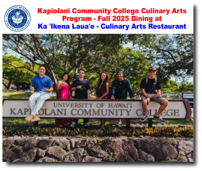 Kapiolani Community College Culinary Arts Program - Fall 2025 Dining at Ka ʻIkena Lauaʻe - Culinary Arts Restaurant