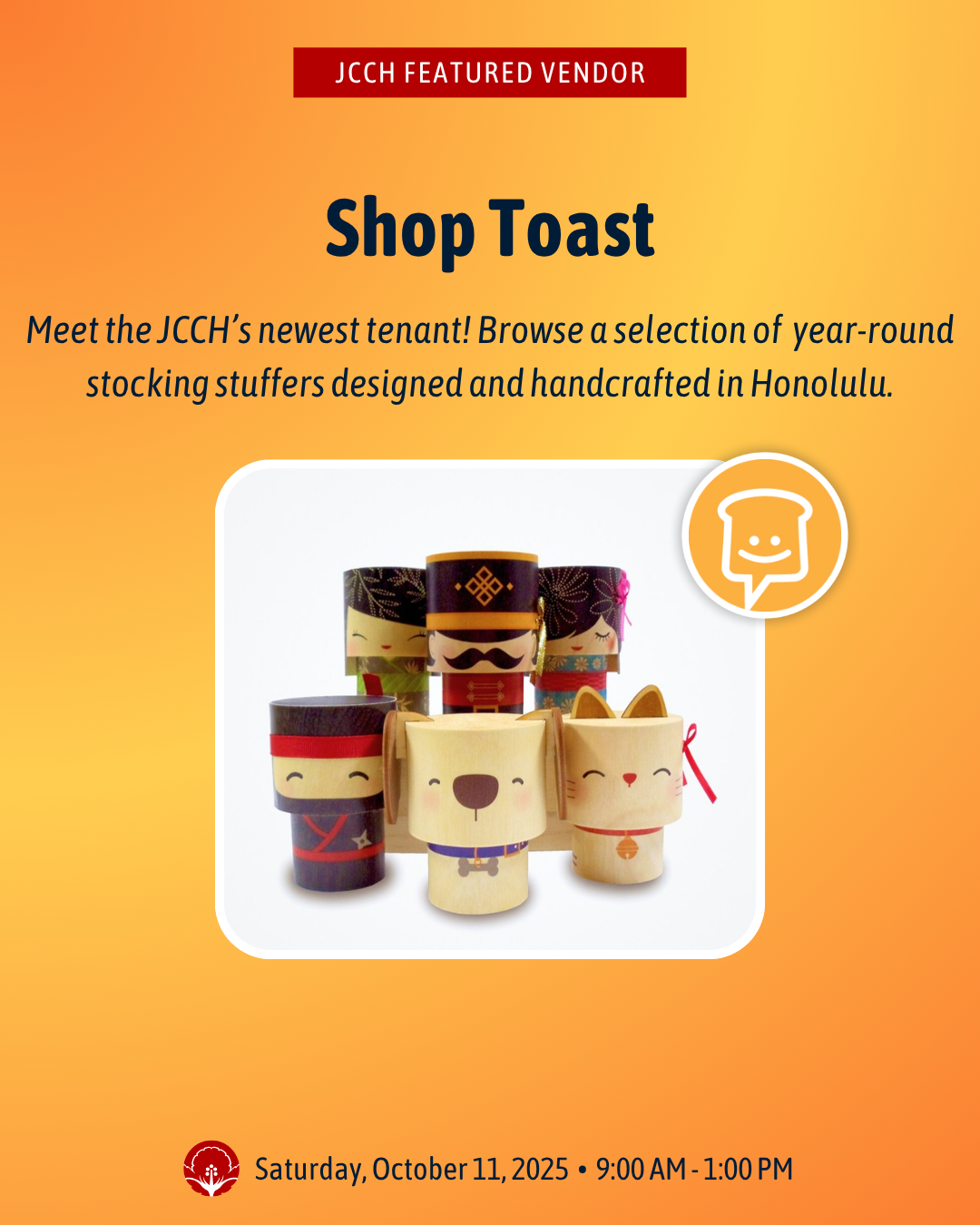 FEATURED VENDOR: Meet the JCCH’s newest tenant, Shop Toast. Browse a selection of year-round stocking stuffers designed and handcrafted in Honolulu.