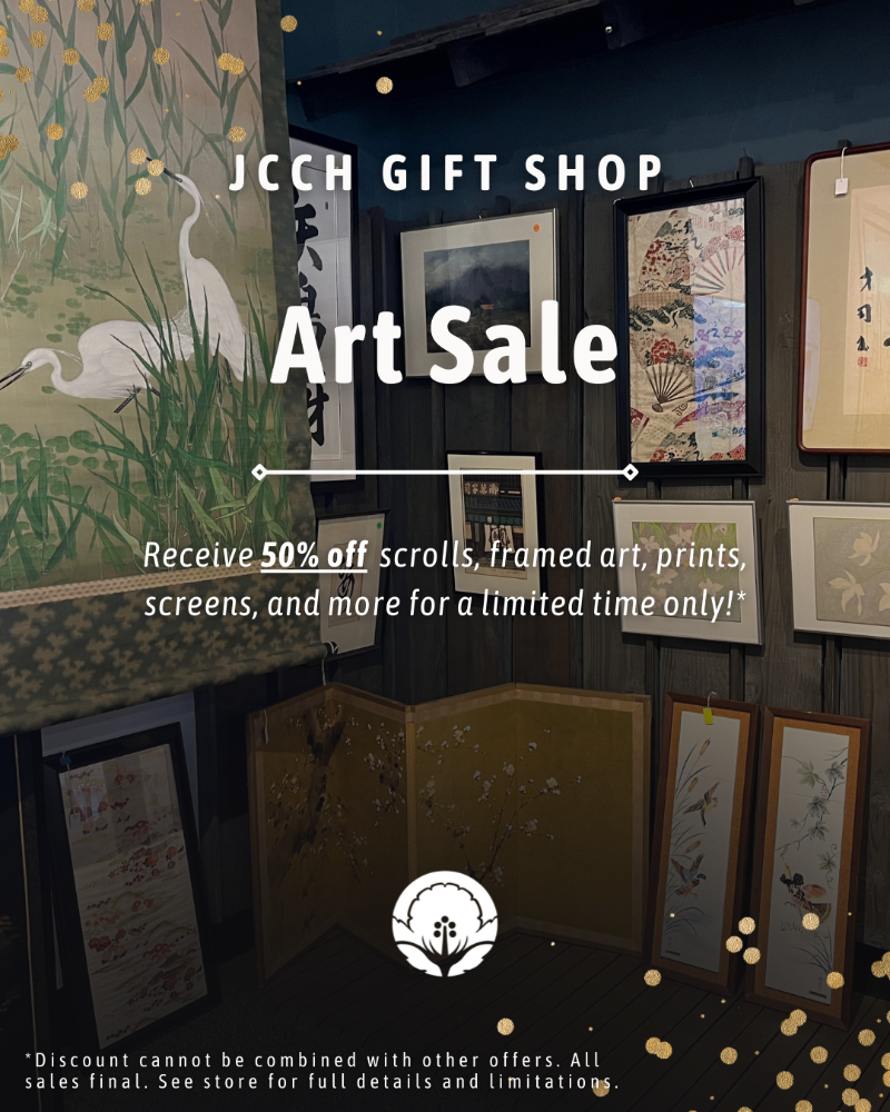 ART SALE: Beginning on Wednesday, October 1, 2025, receive 50% off marked prices on scrolls, framed art, prints, screens, and more at the JCCH Gift Shop for a limited time only. JCCH members now have early access to the sale!