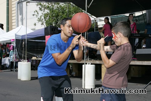 Spinning the ball with a volunteer at Celebrate Kaimuki Kanikapila