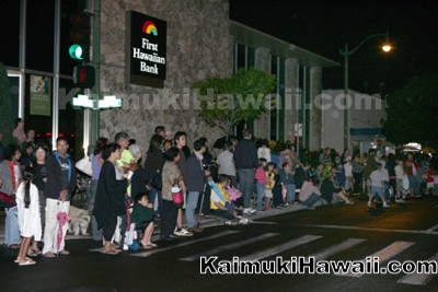 Bystanders watching by First Hawaiian Bank building as the Kaimuki Christmas Parade passes by