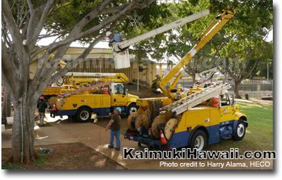 Hawaiian Electric Company Volunteers Setting Up Christmas Lights At Kaimuki Community Park