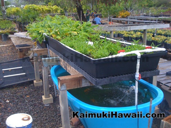 Basil, luau, and on choy grow quickly with the help of golden tilapia in the aqua culture system.