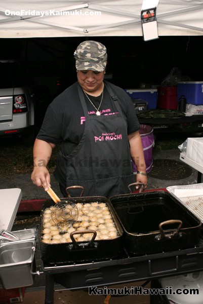 Frying up some Poi Mochi at Ono Fridays Kaimuki fundraiser