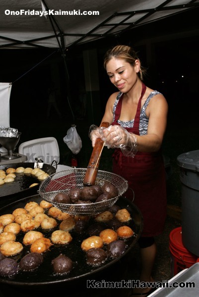 Frying up those poi malassadas at Ono Fridays Kaimuki!