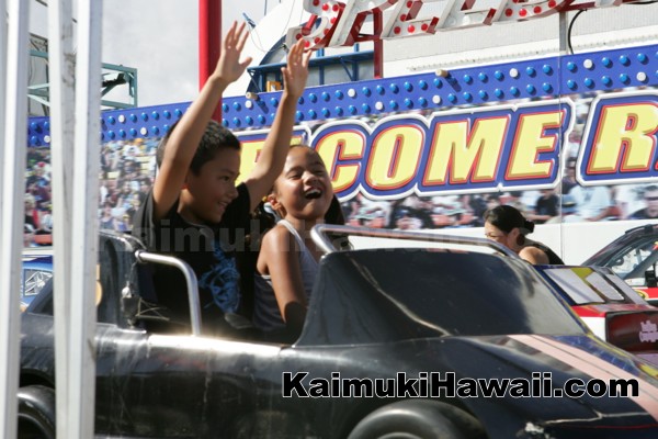 "Look Mom, no hands!" Having a blast on The Speedway at Kaimuki Carnival