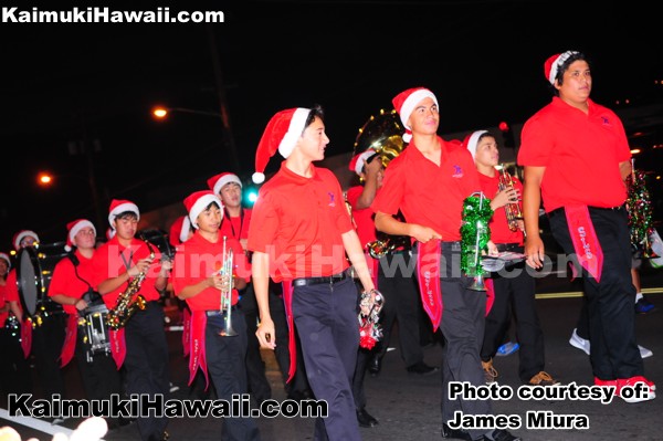 St. Louis School Crusader Band marches at the Kaimuki Christmas Parade 2016 033