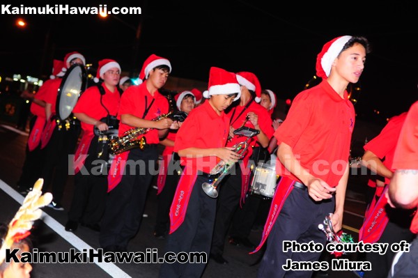 St. Louis School Crusader Band marches at the Kaimuki Christmas Parade 2016 034