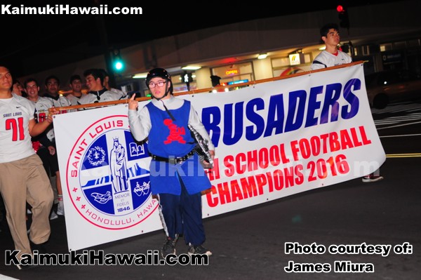 Saint Louis School Crusaders HS Football team at the Kaimuki Christmas Parade 2016 389