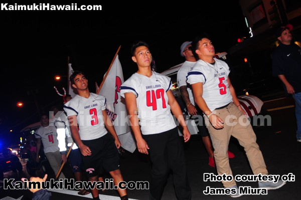 Saint Louis School Crusaders HS Football team at the Kaimuki Christmas Parade 2016 392